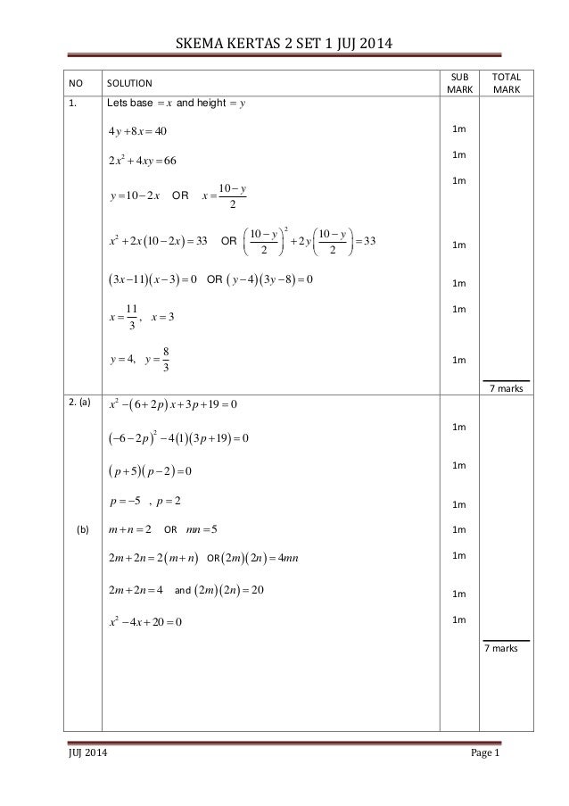Juj Pahang 2014 Add Math Spm K2 Set 1 Skema