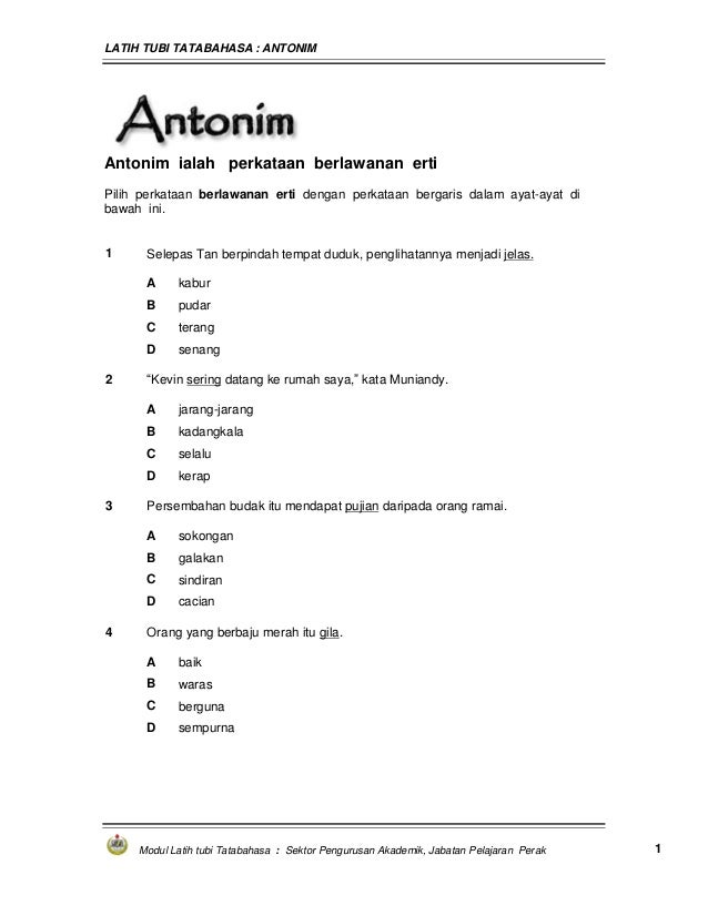 140 Soalan Antonim Sinonim Sesuai Untuk Upsr Siap Dengan Jawapan Free Download Mykssr Com