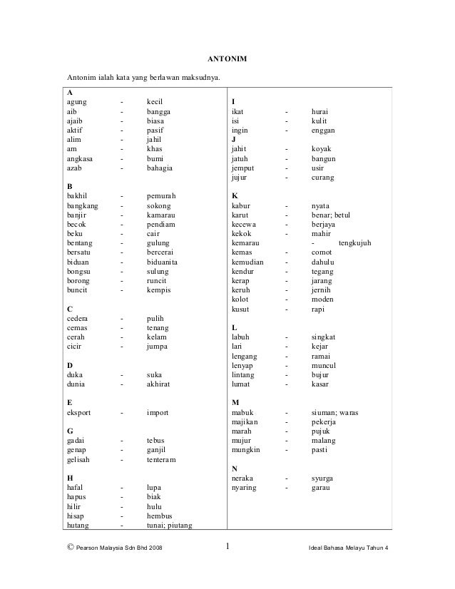 Antonim Perkataan Berlawan Nota Latihan Upsr Pt3 Spm Facebook