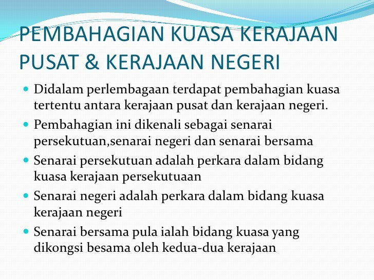 Bidang Kuasa Kerajaan Persekutuan Dan Kerajaan Negeri