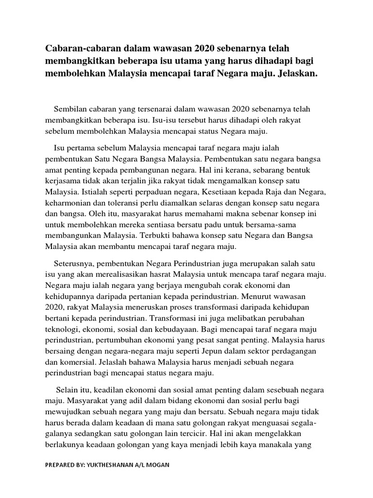 Contoh Jawapan Sejarah Kertas 3 Bab 5 Tingkatan 5