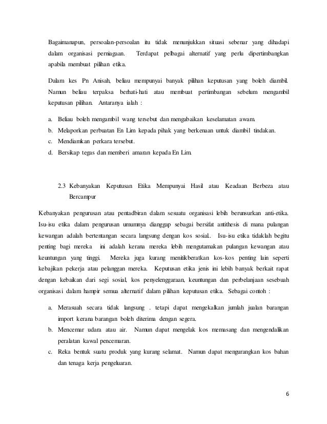 Contoh Masalah Etika Dalam Pengurusan Dengan Ciri Masalah Etika
