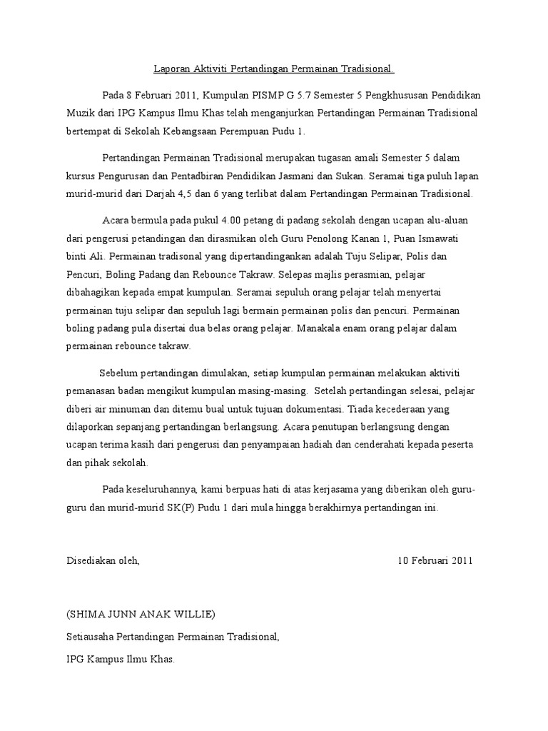 Contoh Karangan Laporan Pt3 Pertandingan