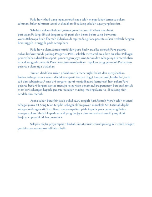 Contoh Karangan Laporan Upsr Hari Sukan