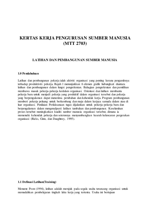 Kertas kerja pengurusan sumber manusia mtt 2703 latihan dan pembangunan sumber manusia 1 0 pendahuluan latihan dan pembangunan pekerja ialah aktiviti organisasi yang penting kerana pengaruhnya terhadap produktiviti pekerja. Kertas kerja pengurusan sumber manusia 1. Kepuasan komitmen dan prestasi pekerja kepuasan dan prestasi kumpulan kerja kos permulaan bagi pekerja baharu kemungkinan terus bekerja kos menggantikan pekerja. Tajuk 8 orientasi pekerja 1.