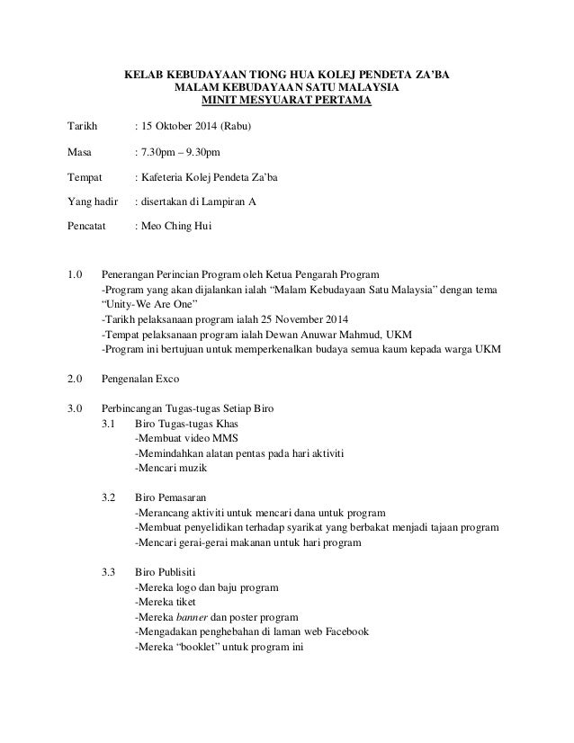 Doc Contoh Minit Mesyuarat Ajk Persatuan Bahasa Melayu Etiesha Rais Academia Edu