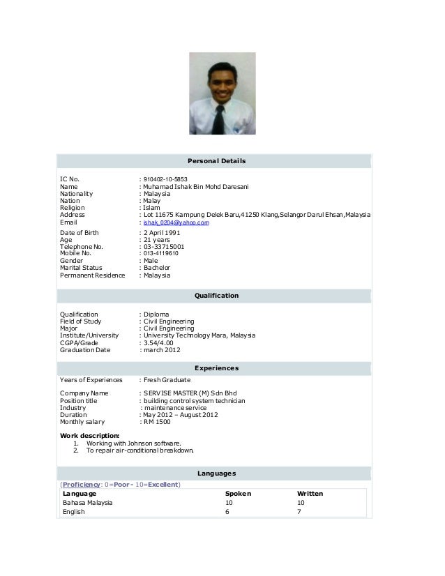 Contoh Resume Untuk Fresh Graduate Resume For You