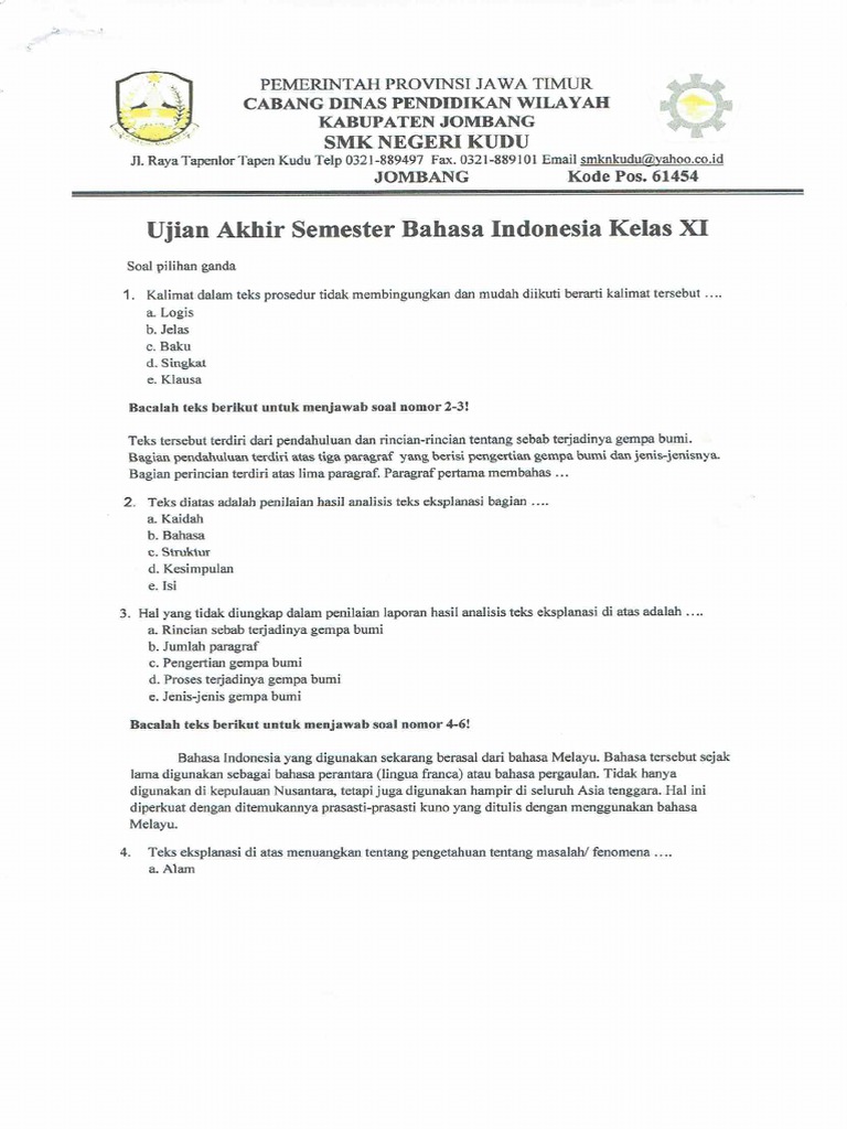 50 Contoh Soal Ukk Bahasa Indonesia Kelas 8 Smp Mts Dan Kunci Jawaban
