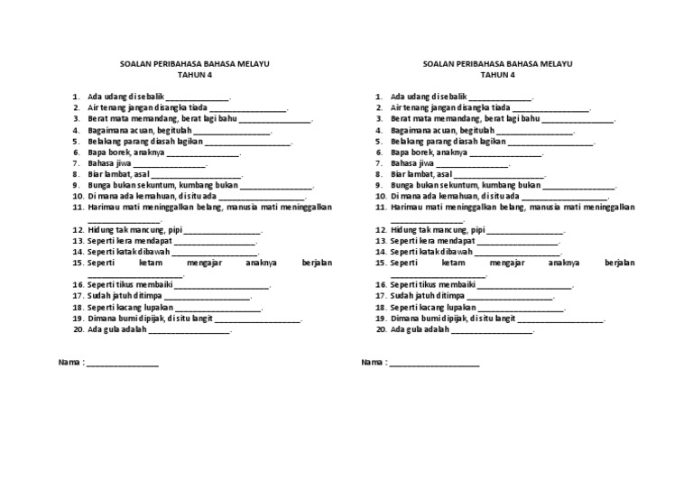 Soalan Peribahasa Bahasa Melayu Docx