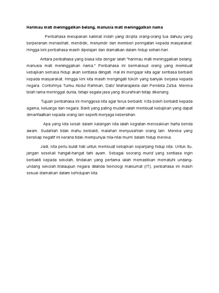 Harimau Mati Meninggalkan Belang Manusia Mati Meninggalkan Nama Contoh Karangan