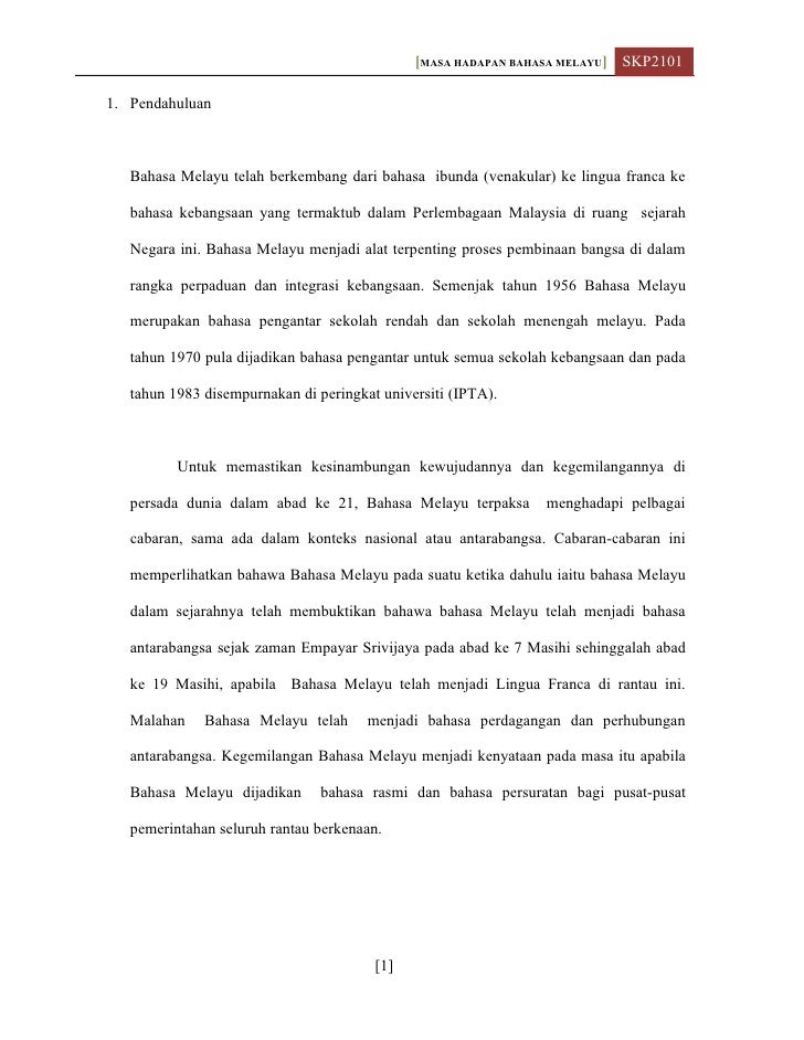 Doc Masa Depan Dan Cabaran Bahasa Melayu Unitkoko Skbp Academia Edu