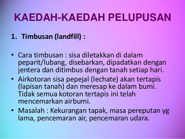 Tajuk Kesan Pembuangan Bahan Sisa Industri Terhadap Alam Sekitar By Lily Suriyani