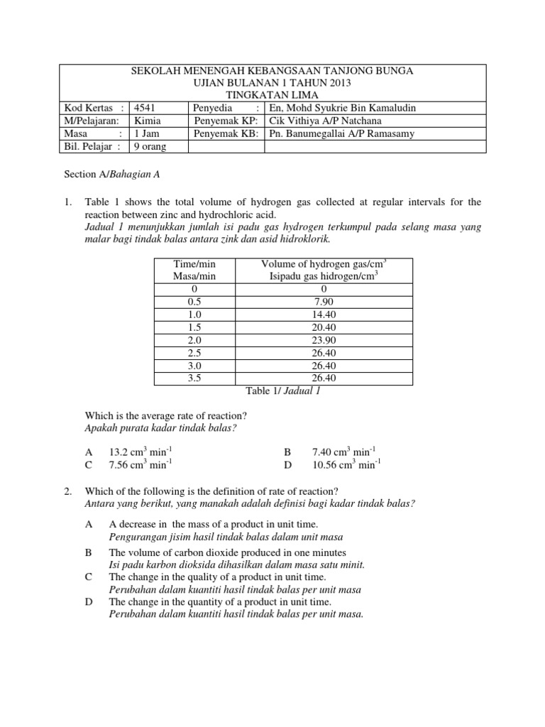 Pdf Bab 1 Kadar Tindak Balas Rate Of Reaction Arina Adila Academia Edu