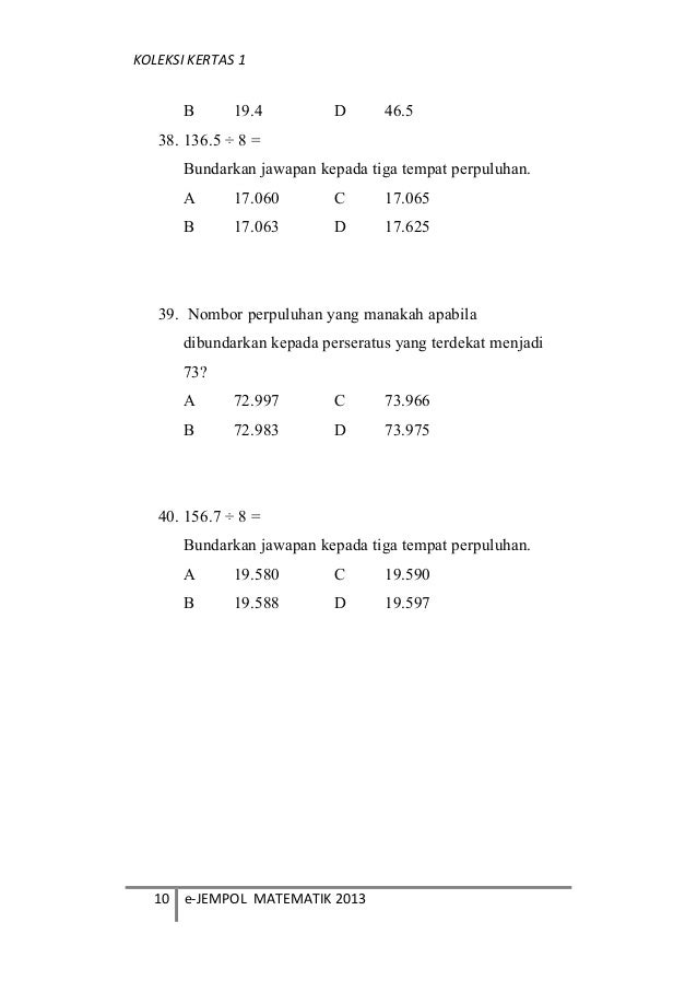 Soalan Matematik Tahun 5 Bundarkan Viral Blog V
