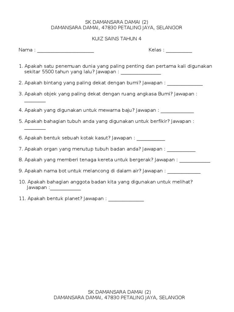 Soalan Kuiz Sains Tahun 5 Viral Blog Q