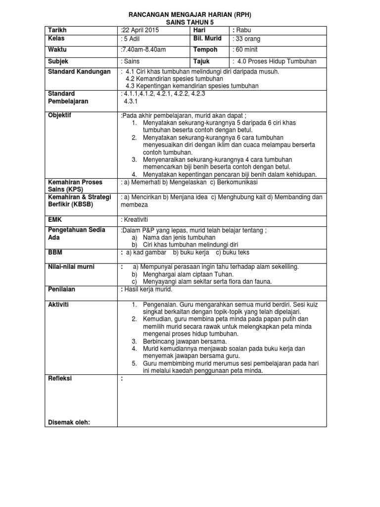 Lembaran Online Sains Tahun 5 Proses Hidup Tumbuhan Sumber Pendidikan