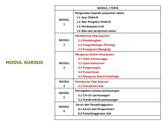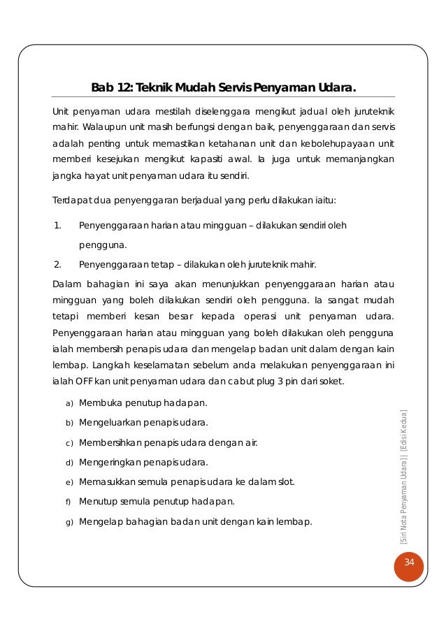 Langkah langkah penyelenggaraan penyaman udara. Pengeluaran unit penyaman udara menggunakan gas r22 juga akan dihentikan secara berperingkat. Penyaman udara bukan sahaja bertindak sebagai pendingin. Modul kursus modul topik modul 1 pengenalan kepada penyaman udara 1 1 asas elektrik 1 2 alat pengukur elektrik 1 3 pendawaian unit 1 4 alat alat penyaman udara modul 2 membentuk paip kuprum 2 1 membengkok 2 2 pengembangan flaring 2 3 penegasan swaging modul 3 mengecas sistem penyejukan 3 1 tolok pancarongga 3 2 ujian kebocoran 3 3 pengosongan 3 4 pump down 3 5 mengecas bahan pendingin. Jadualkan penyelenggaraan tetap untuk aircond anda.