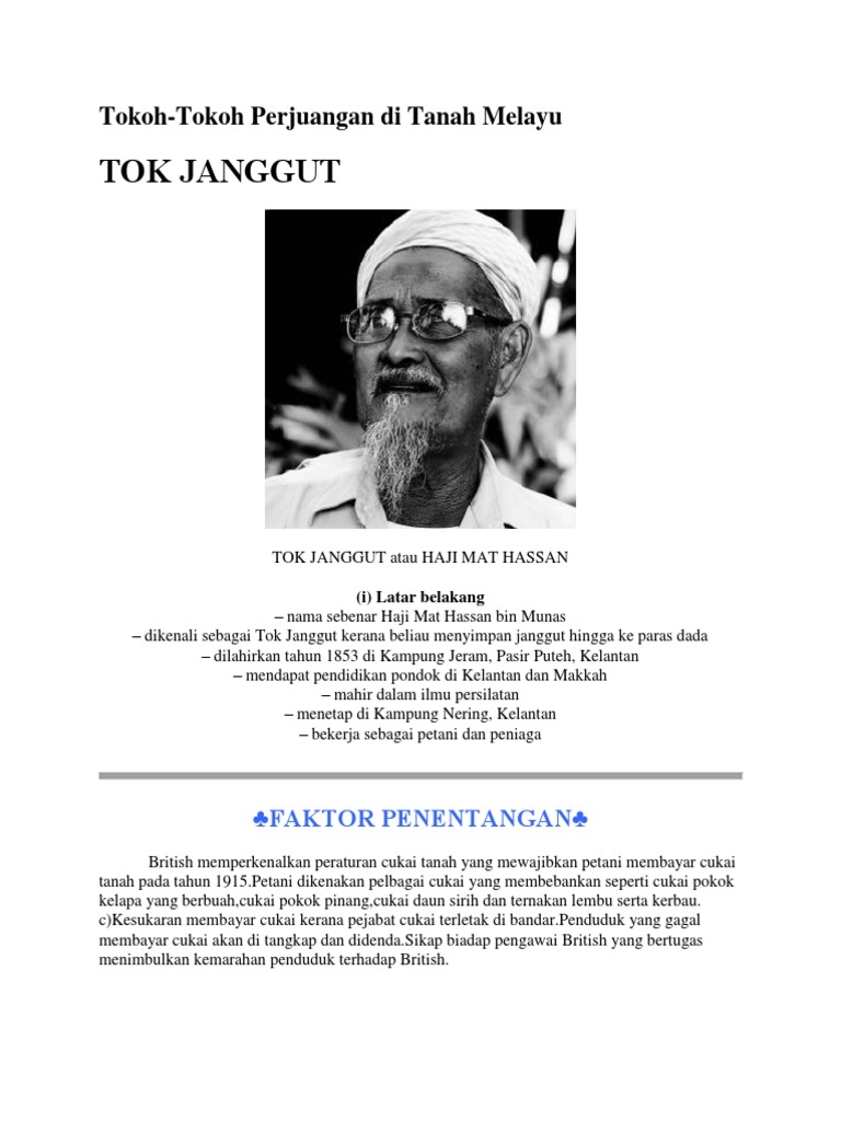 Biografi Tok Janggut Dan Penentangan Terhadap Keganasan British Tok Janggut Tokoh Patriotik