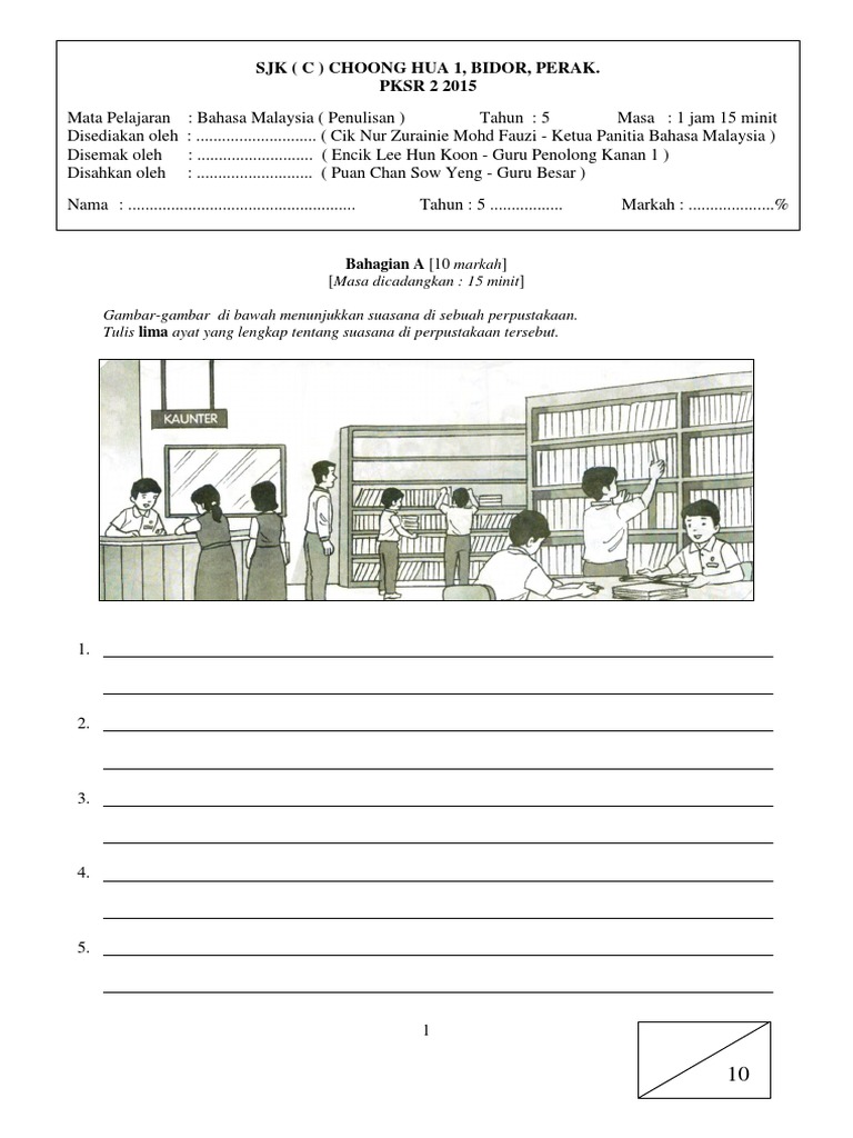 Contoh Soalan Bahasa Melayu Tahun 5 Sjkc Y Soalan