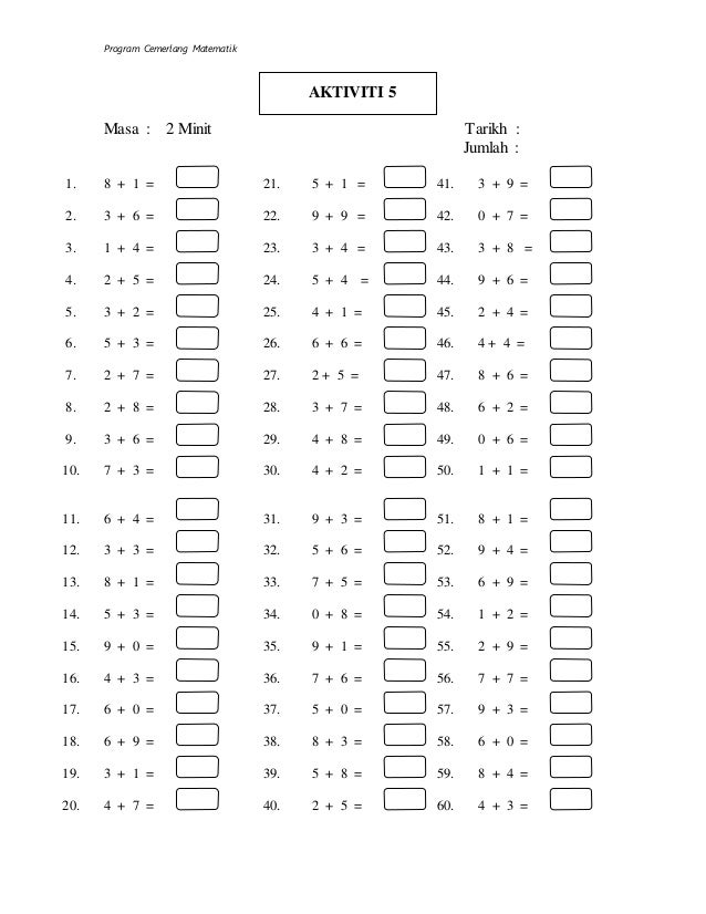 Latihan Operasi Tambah 1 Hingga 10 Linus Kitpramenulis