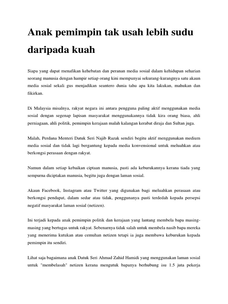 Anak Pemimpin Tak Usah Lebih Sudu Daripada Kuah