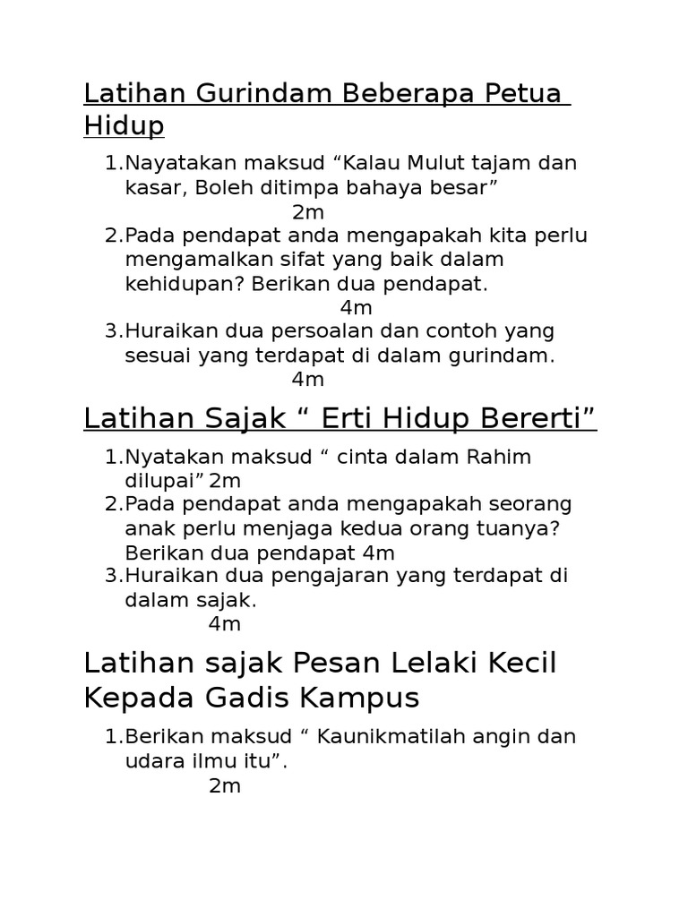Esei Dan Komsas Tingkatan 4 Dan 5 Spm Antologi Sejadah Rindu Puisi Tradisional Beberapa Petua Hidup Za Ba
