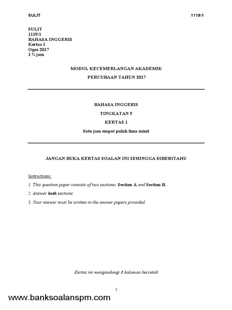 Laman Bahasa Melayu Spm Simulasi Peperiksaan Kedua Pecutan Akhir Spm 2017 24 10 2017
