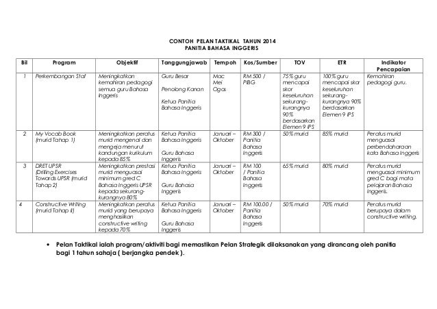 Contoh Pelan Strategik Dan Pelan Taktikal Panitia Bahasa Melayu