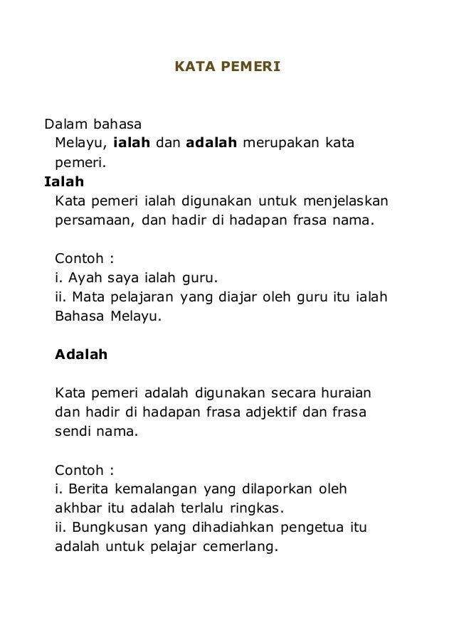 Contoh Ayat Kata Pemeri Ialah Dan Adalah Materi Pelajaran 9