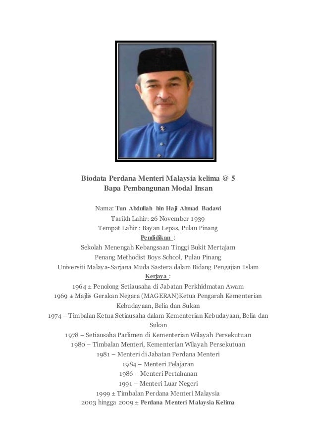 Perdana Menteri Malaysia Pertama Hingga Sekarang Biodata