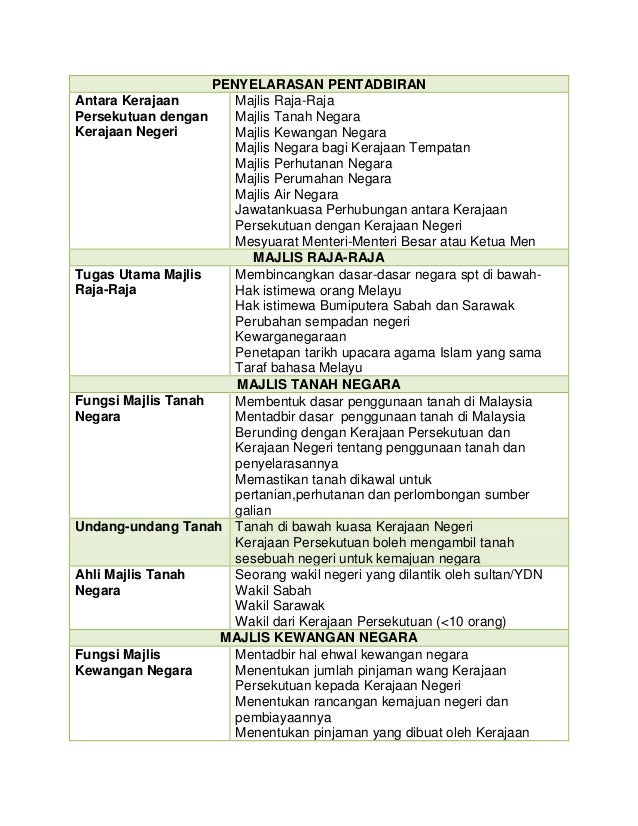 Persamaan kerajaan persekutuan dan kerajaan negeri. Bagi senarai negeri pula ia termasuk undang undang islam dan undang undang peribadi dan keluarga bagi individu yang menganut agama islam mewujudkan mahkamah syariah tanah pertanian dan hutan kerajaan tempatan pihak berkuasa tempatan pemilihan kerajaan tempatan pasar dan pelesenan teater pawagam dan tempat tempat hiburan awam kerja raya negeri dan air kecuali pembekalan dan. Kerajaan persekutuan malaysia tulisan jawi. 9 siasatan bagi maksud negeri 10 persekutuan muzium serta rekod purbakala dan sejarah. Setiap pemilikan tanah kerajaan persekutuan yang diberikan oleh kerajaan negeri haruslah negeri tersebut berhak terhadap hasil cukai caj dan sumber pendapatan yang dipungut atau dihasilkan di dalam negeri sebagaimana ditetapkan di bawah perkara iii jadual kesepuluh yang telah diperuntukan di dalam perlembagaan persekutuan bayaran premium dan cukai tanah yang telah pun dimiliki oleh kerajaan.