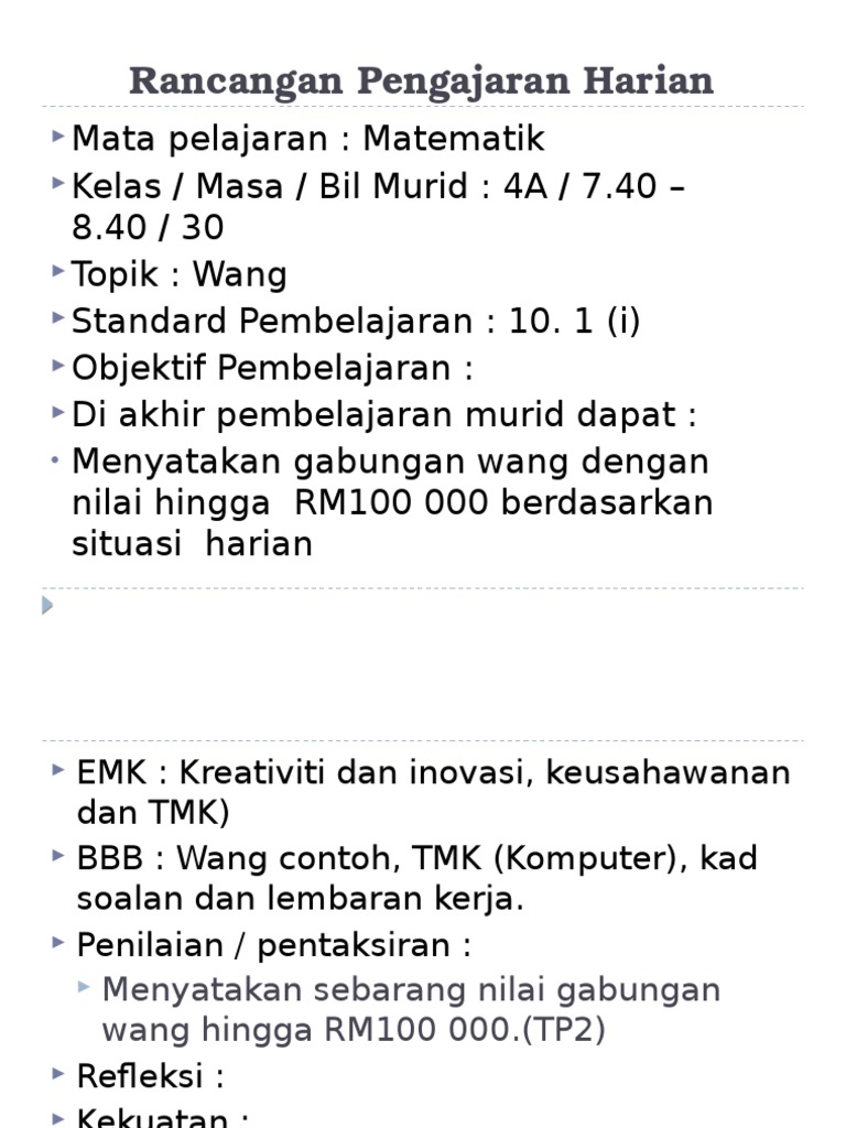 Contoh Rancangan Pengajaran Harian Matematik Tahun 4 Mass Cute766