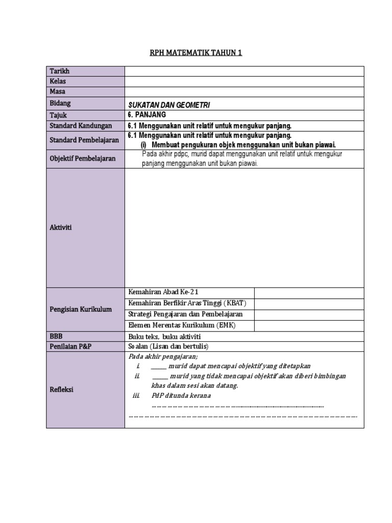 Koleksi Rph Matematik Tahun 6 Sekolah Rendah