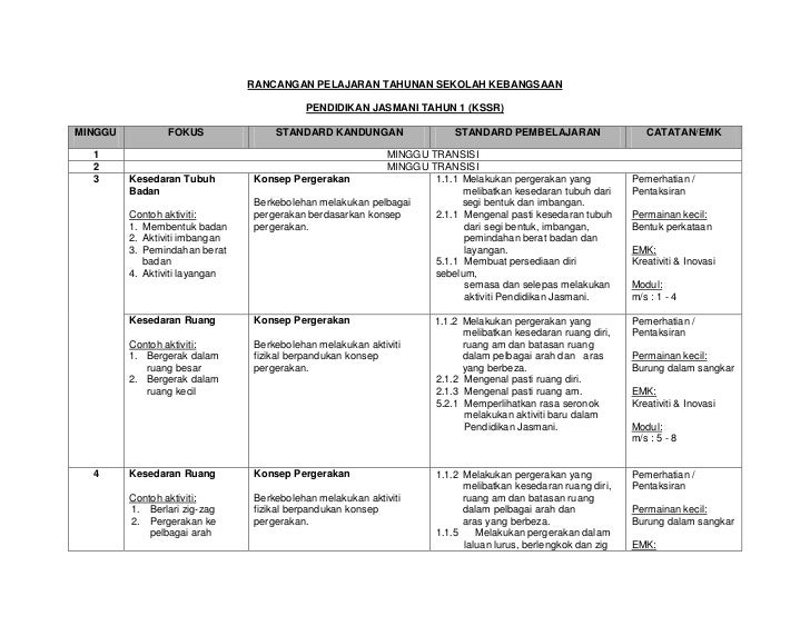 Rpt Tahun 1 Kssr Rpt Pendidikan Jasmani Sk Tahun 1