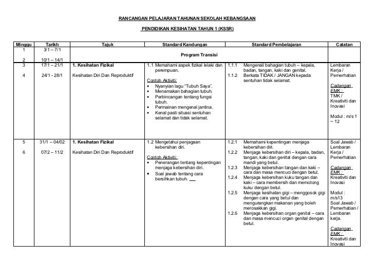 Rpt Kssr Pendidikan Kesihatan Tahun 1