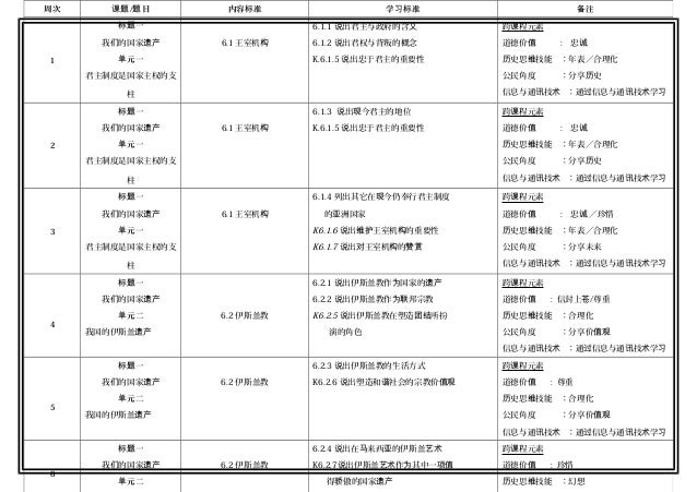 2018五年级历史全年计划rpt Sejarah Tahun 5 2018