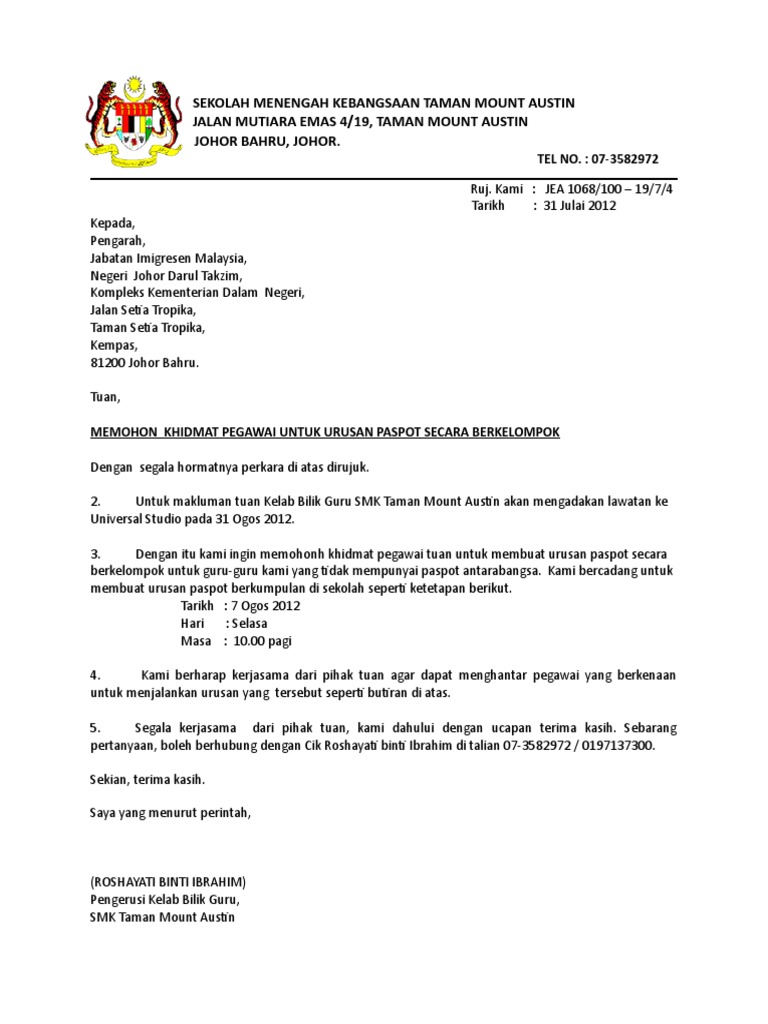 Contoh Surat Lawatan