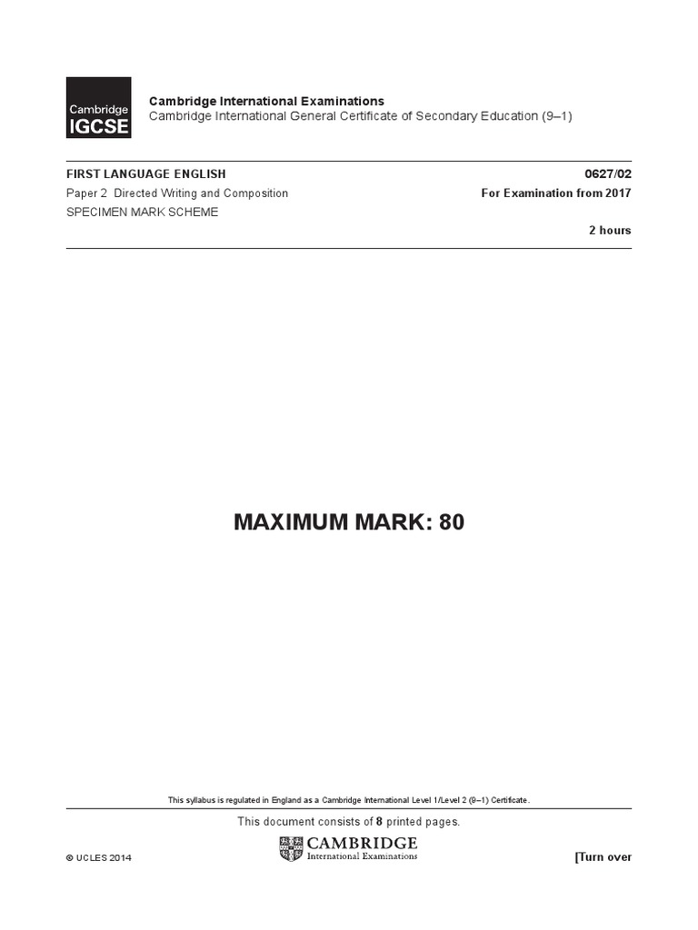204346 2017 2019 Specimen Paper 2 Mark Scheme Narrative Test Assessment