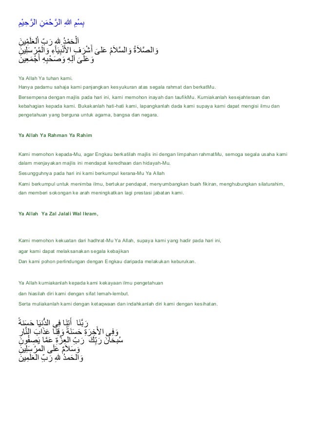 Doa Pembuka Dan Penutup Acara Arab Latin Dan Terjemah